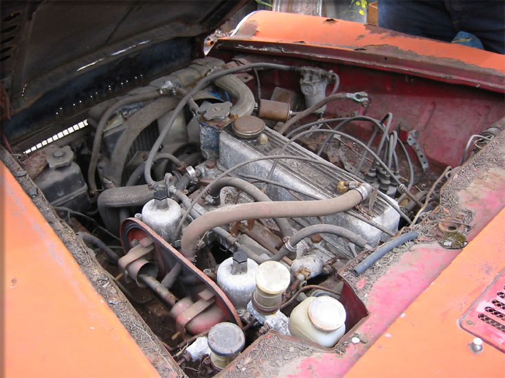The Donor’s Engine The donor came with an earlier 3-main bearing R-16 (R 27460). The motor turns over easily by hand. “Ran when parked,” according to the seller. Evidently that was in White Center 5 years previous to the 5 years the cars spent in InterBay. That would be 1993. The engine is surprisingly unmolested and the block is still dark Nissan blue. Yellow paint pen “1600” on the valve cover suggests it came from a boneyard. The head seems to match - early cast iron without holes for the pollution control air injection system of the later motors. Early 3-main bearing R-16 |